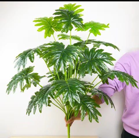 Features realistic broad leaves with natural vein detail