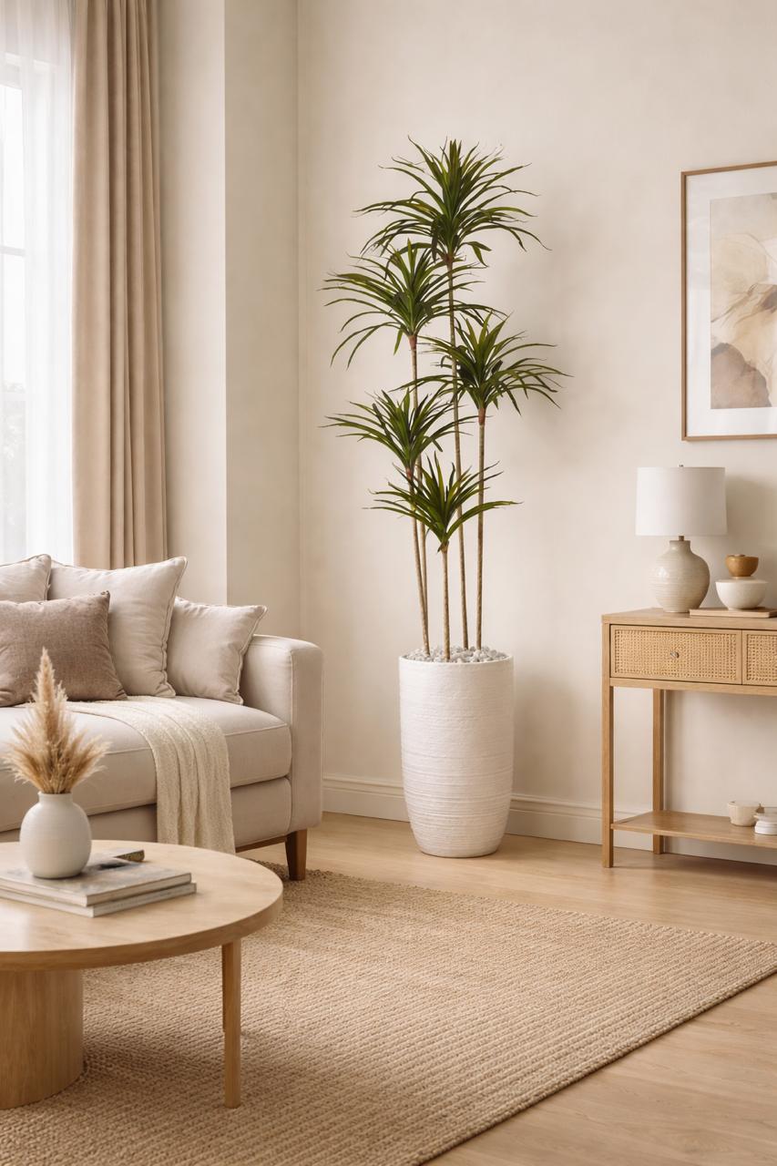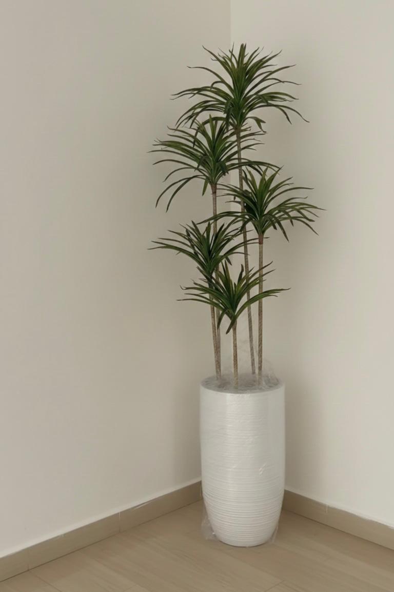 Elevate your interior design with this premium faux botanical arrangement. Designed to replicate the distinct silhouette of a Dracaena Marginata, this piece provides a permanent “designer look” without the specialized care real tropical plants require.