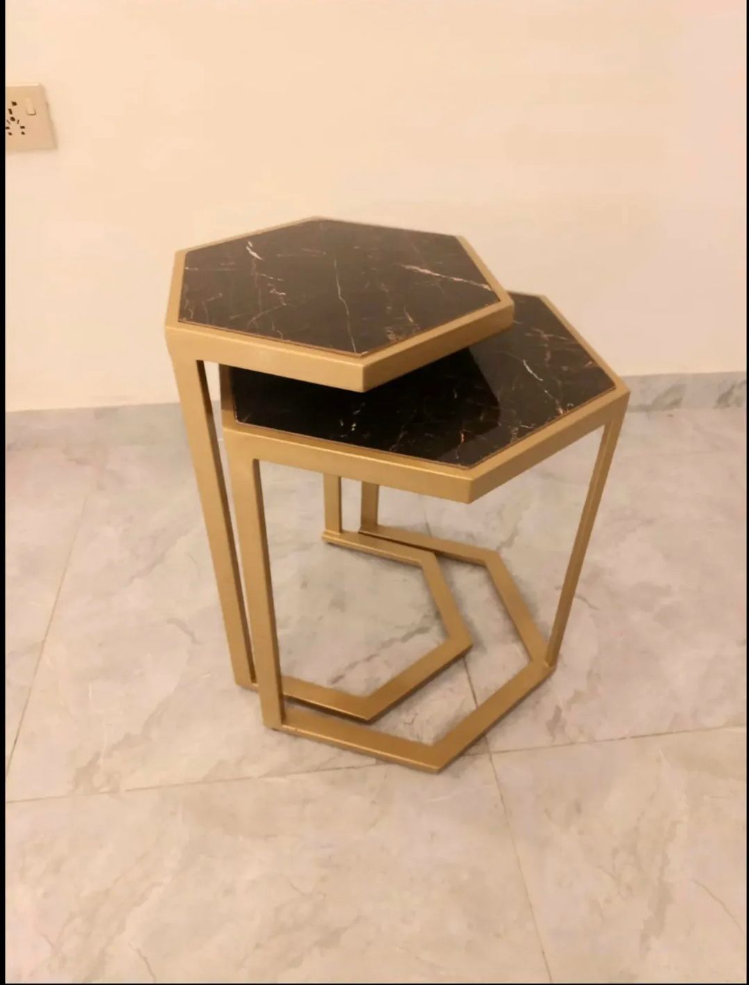 This elegant Modern Nesting Table Set is a stunning blend of luxury and modern design, featuring three versatile tables that can be used individually or stacked together for a compact storage solution. The black marble tops, with their rich, dark hues and intricate veining, are paired with durable, geometric metal frames in a gold finish, giving these tables a contemporary, chic look. The unique design adds sophistication to any room while ensuring easy portability and storage. Whether you’re using them as side tables, coffee tables, or accent pieces, these tables are perfect for enhancing your space with a touch of modern elegance.