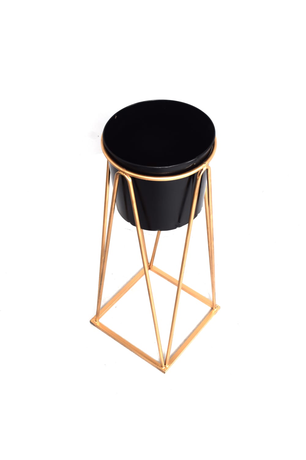 Metal pot with a smooth finish and golden stand