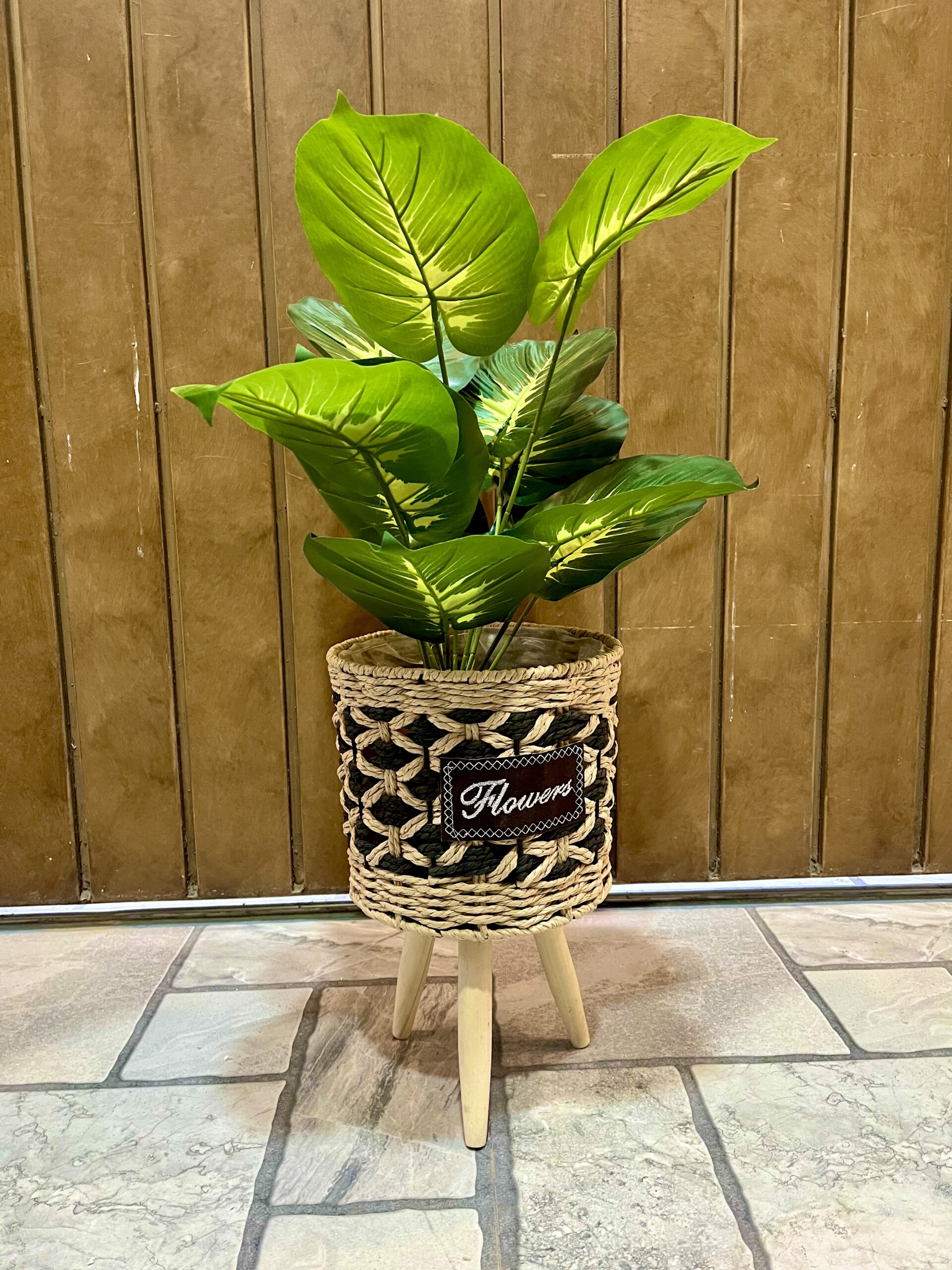 Enhance your interior décor with this beautifully crafted artificial green plant paired with a premium jute tripod planter. Designed to bring a refreshing and natural ambiance, the plant features lush, realistic green leaves that remain vibrant all year long—without any maintenance.