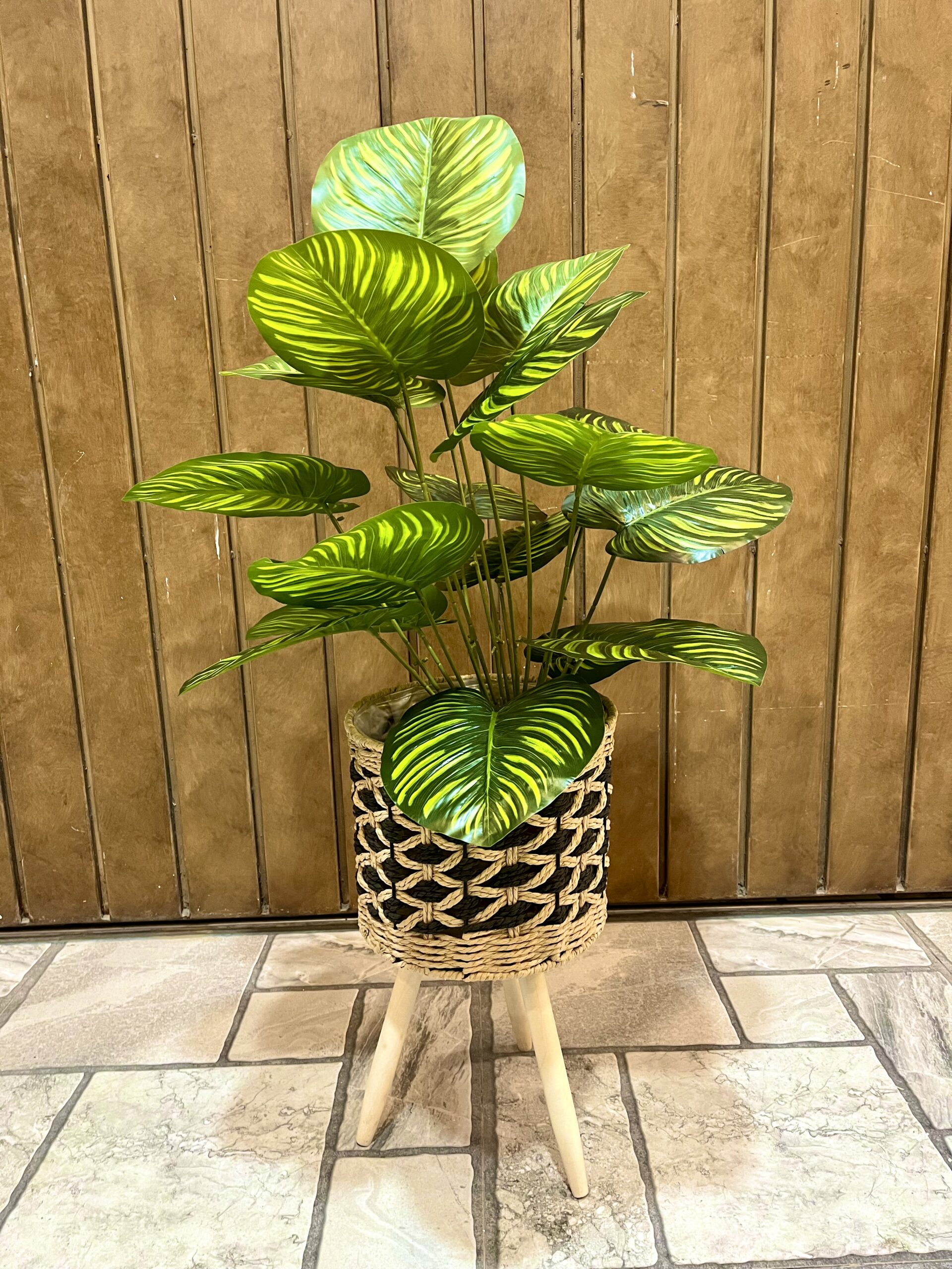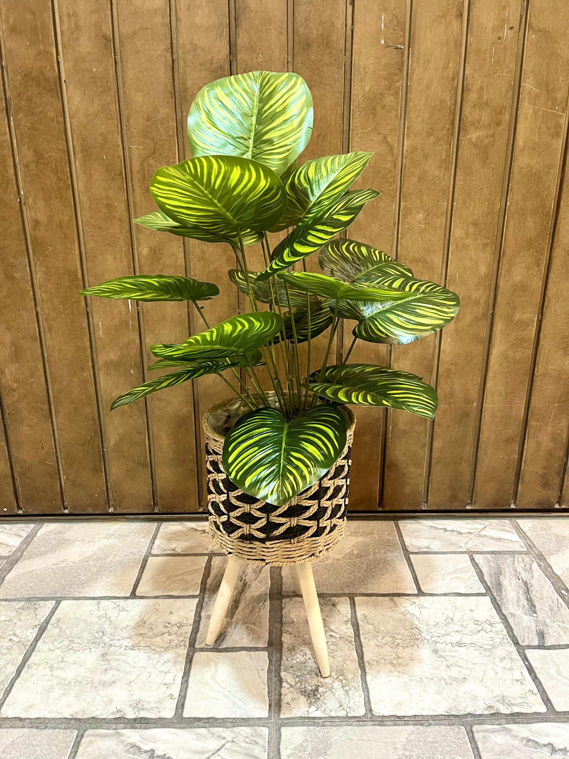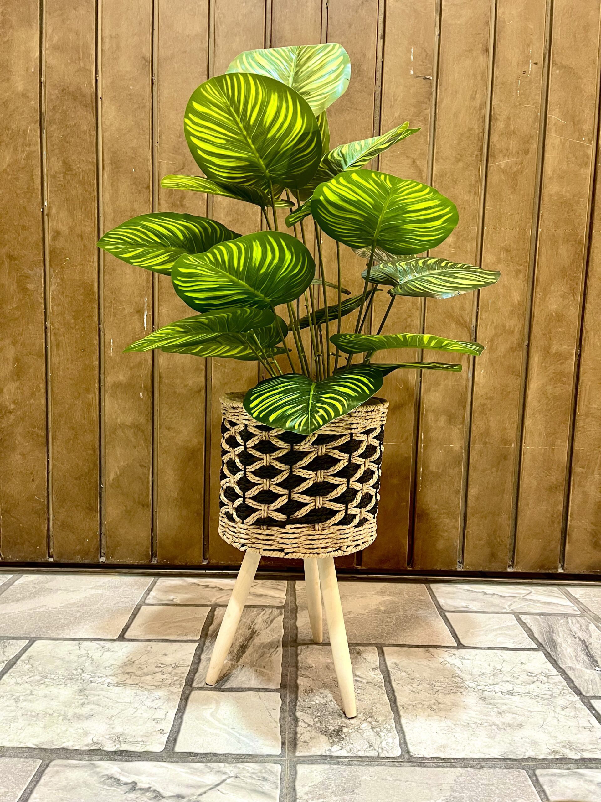 Enhance your home or office décor with this beautiful artificial green plant, carefully arranged in a handcrafted jute tripod basket. The lush, variegated leaves provide a realistic and refreshing look, bringing the beauty of nature indoors without any maintenance. The woven jute basket adds a rustic yet modern charm, complementing any interior style from bohemian to contemporary. Lightweight and durable, this plant is ideal for tabletops, shelves, corners, or entryways. Enjoy a hassle-free greenery display that brightens your space all year round, creating a calming and stylish ambiance effortlessly.