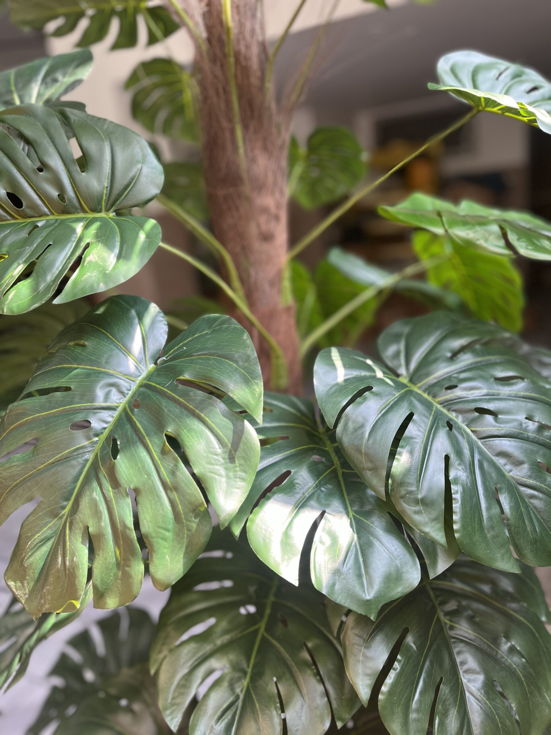 - The Monstera plant, known for its unique split leaves, brings a refreshing and tropical vibe to any interior. The glossy, vibrant green foliage adds life to both modern and traditional settings. Perfect for living rooms, offices, or even entryways, this plant’s aesthetic appeal complements a variety of decor styles. Its sturdy trunk supports an impressive display of large, perforated leaves, while the sleek white pot creates a modern contrast that enhances the plant’s visual impact. Whether you’re looking to brighten up a corner or create a lush centerpiece, the Monstera plant brings an element of natural beauty and serenity.