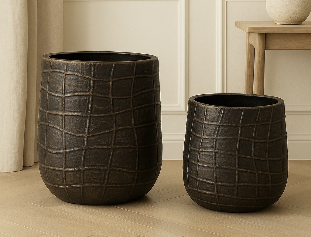 Add timeless style to your home with the Urban Grid Planters, designed with a striking carved grid texture that blends modern elegance with artisan craftsmanship. Finished in classic black and white, these planters bring a sophisticated touch to both indoor and outdoor settings.